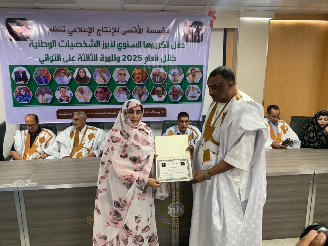 نواكشوط – نظمت مؤسسة الأقصى للإنتاج الإعلامي مساء أمس حفل النسخة الثالثة من جائزة أبرز الشخصيات الوطنية لعام 2025، وذلك بالتزامن مع احتفالات البلاد بعيد الاستقلال الوطني.