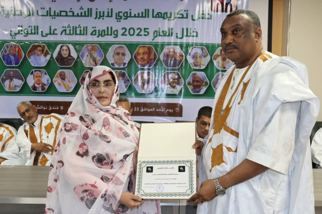 وأشادت المؤسسة بدورها في تشكيل كتلة سياسية داعمة لبرنامج فخامة رئيس الجمهورية السيد محمد ولد الشيخ الغزواني، إضافة إلى جهودها الميدانية والخدمية التي تجاوزت ساكنة أوكار لتشمل خدمة الوطن بأكمله، ما جعلها من أبرز الوجوه النسائية المؤثرة لعام 2025.