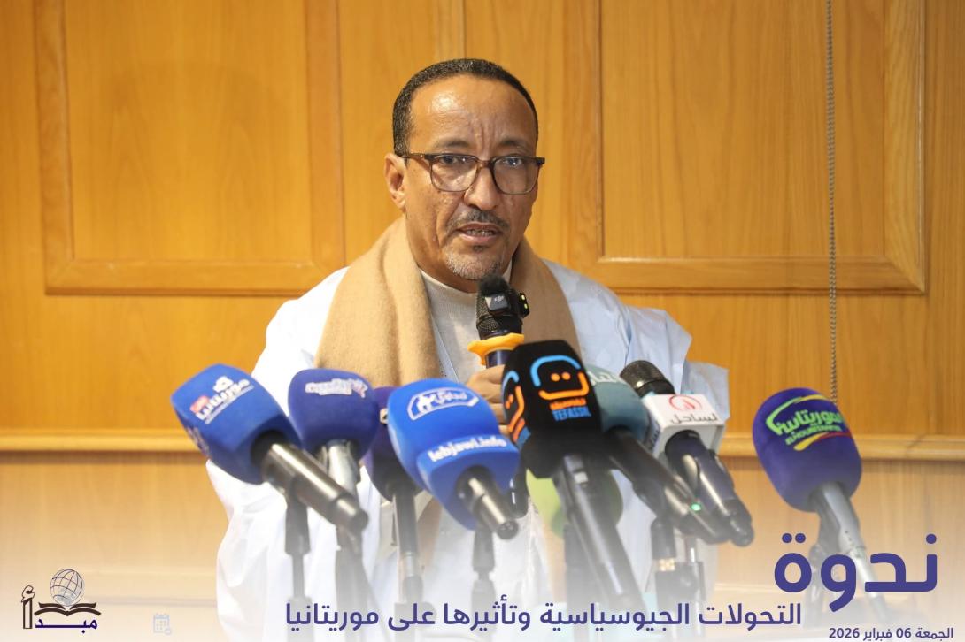 وأضاف أن التحول الجيوسياسي العالمي يضع موريتانيا أمام سؤال 'وجودي هادئ لكنه عميق' هل تكتفي بإدارة موقعها أم ترتقي إلى صياغة معنى لهذا الموقع داخل نظام دولي يتشكل؟ مؤكدا أن الدول في زمن التحول لا تقاس بحجمها بل بقدرتها على الوعي بذاتها وتحويل الجغرافيا من إطار صامت إلى فعل سياسي عقلاني