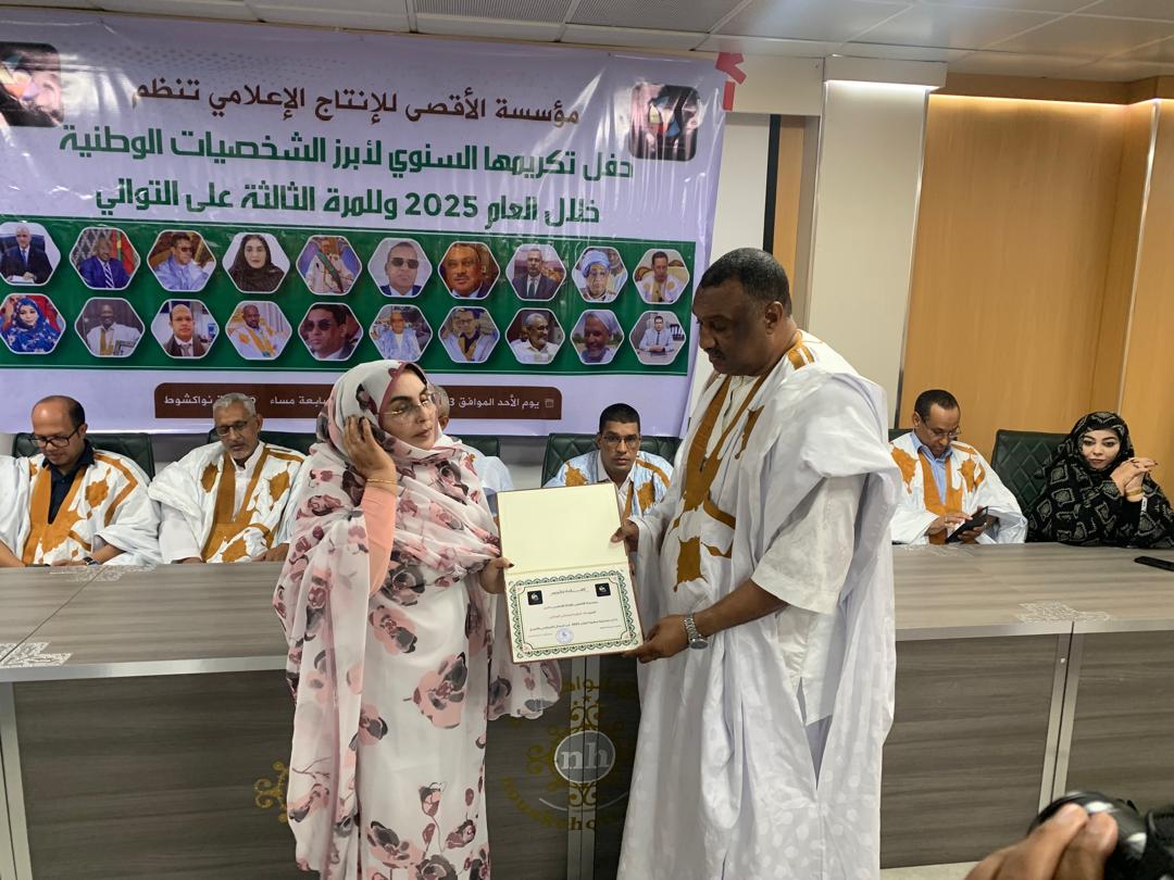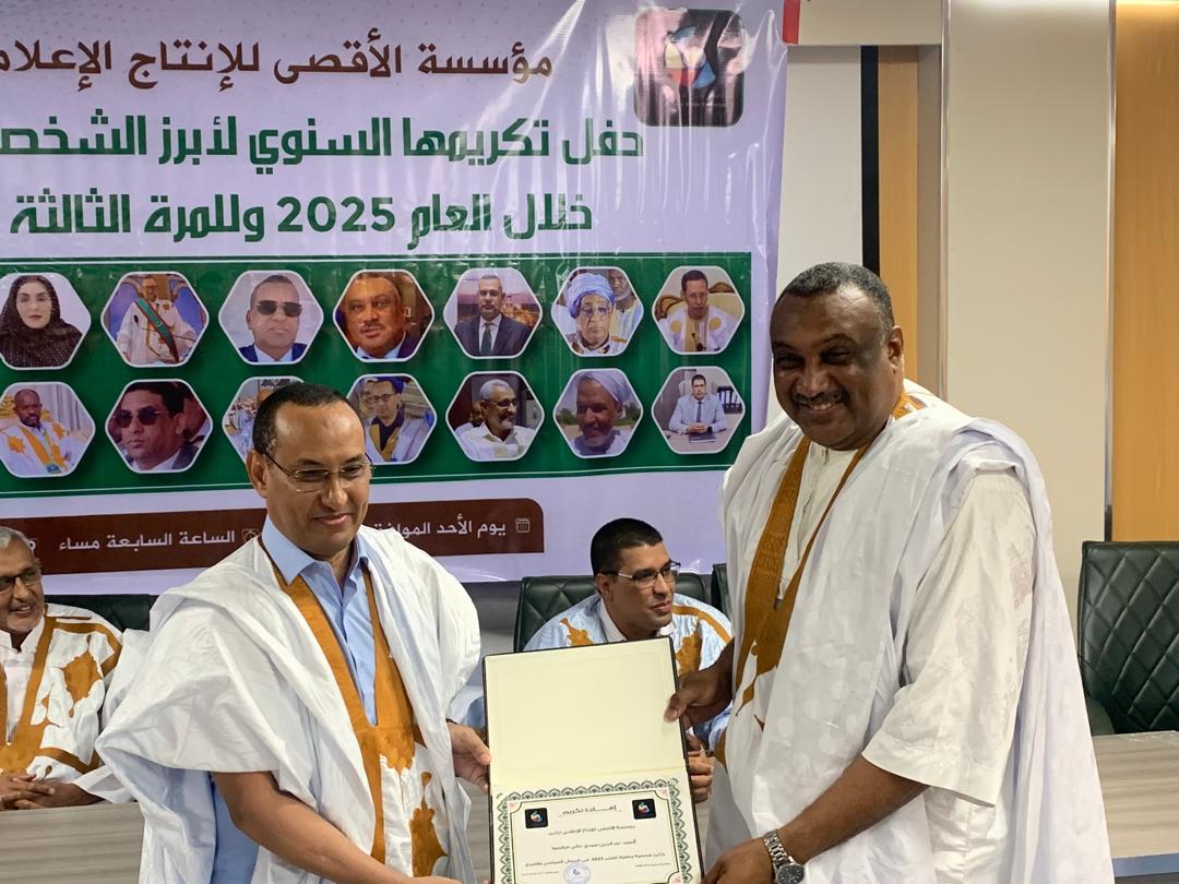 نواكشوط – نظمت مؤسسة الأقصى للإنتاج الإعلامي مساء أمس حفل النسخة الثالثة من جائزة أبرز الشخصيات الوطنية لعام 2025، وذلك بالتزامن مع احتفالات البلاد بعيد الاستقلال الوطني.