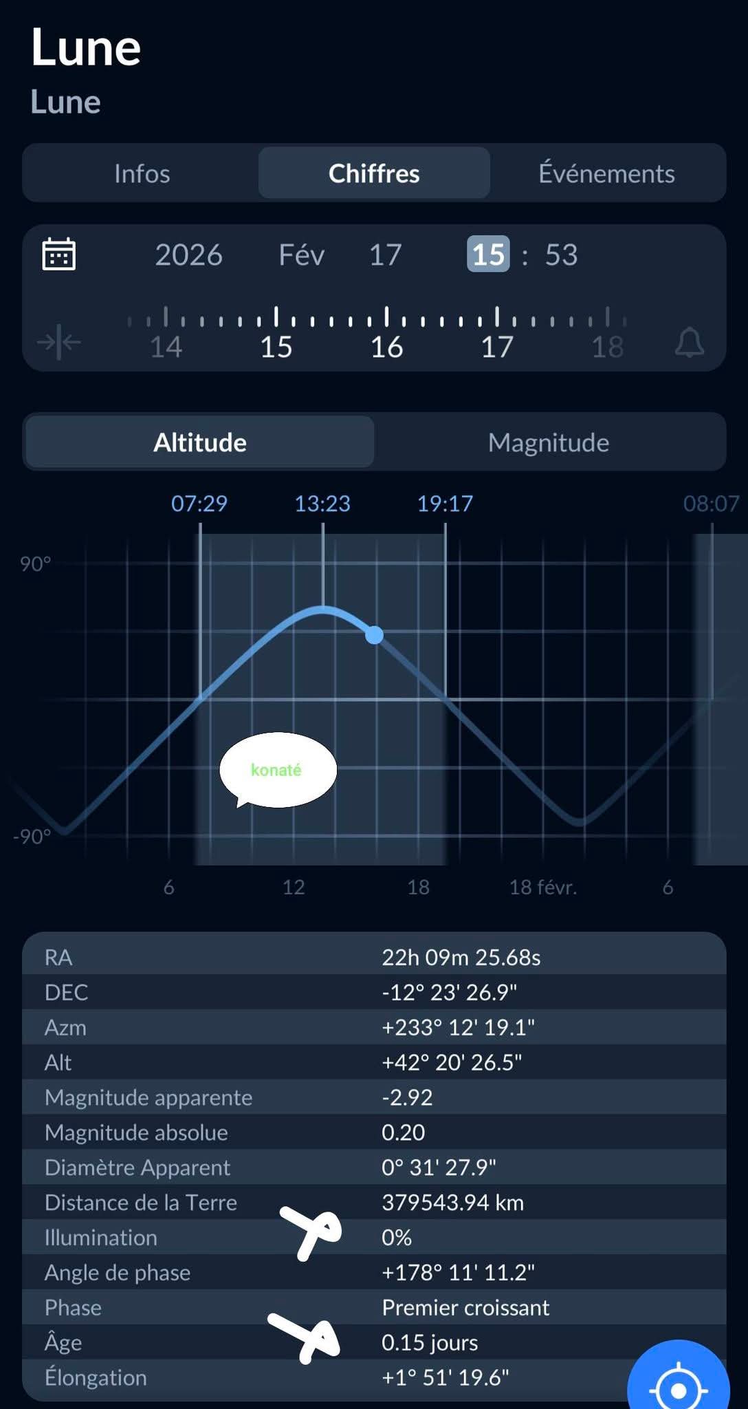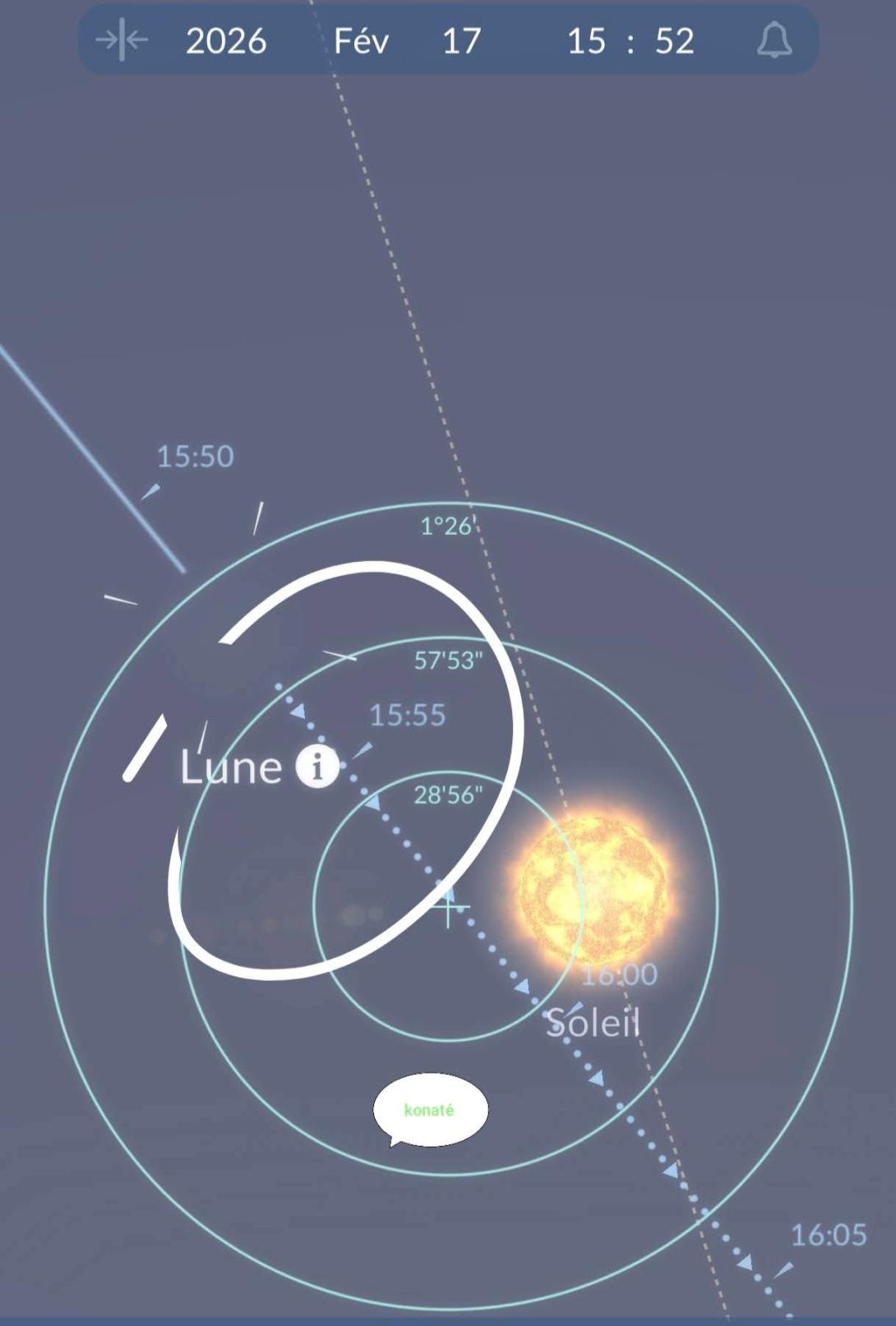 وأوضح الدكتور كوناتي أنه عقب حدوث الاقتران المركزي بين الشمس والقمر والأرض اليوم، وولادة الهلال قبل ساعات قليلة، فإن عمره عند الساعة 16:05 لم يتجاوز 4 ساعات و36 دقيقة، مع نسبة إضاءة تقارب 0%، ما يعني أنه لا يزال في طور المحاق الفلكي.
