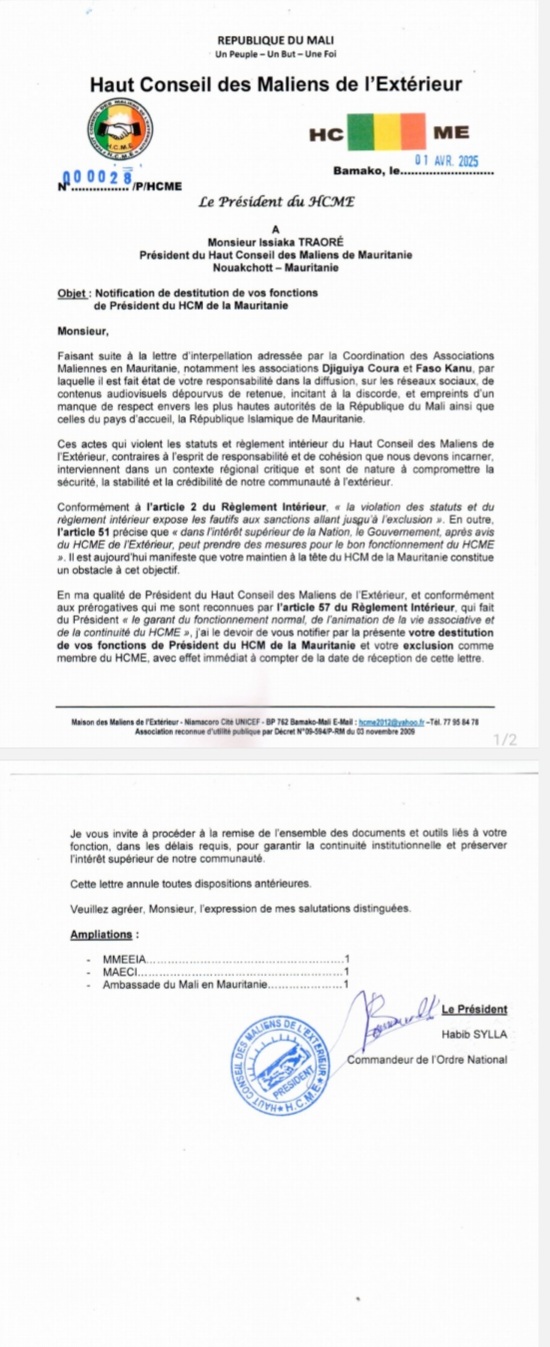 رئيس المجلس الأعلى للماليين في الخارج يعزل إسحاق تراوري من رئاسة المجلس في موريتانيا