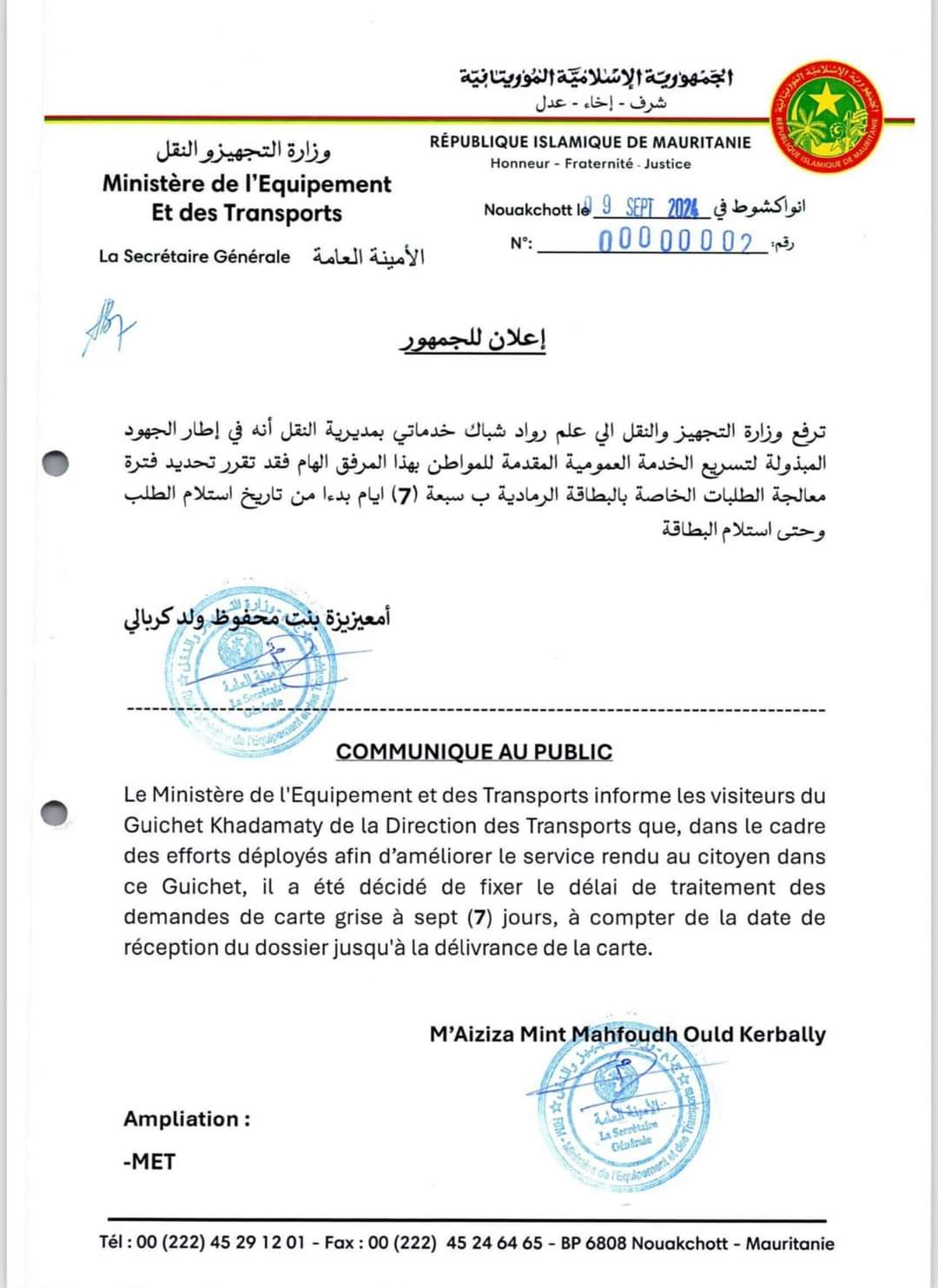 وزارة التجهيز والنقل تحدد فترة معالجة طلبات البطاقة الرمادية في 7 أيام