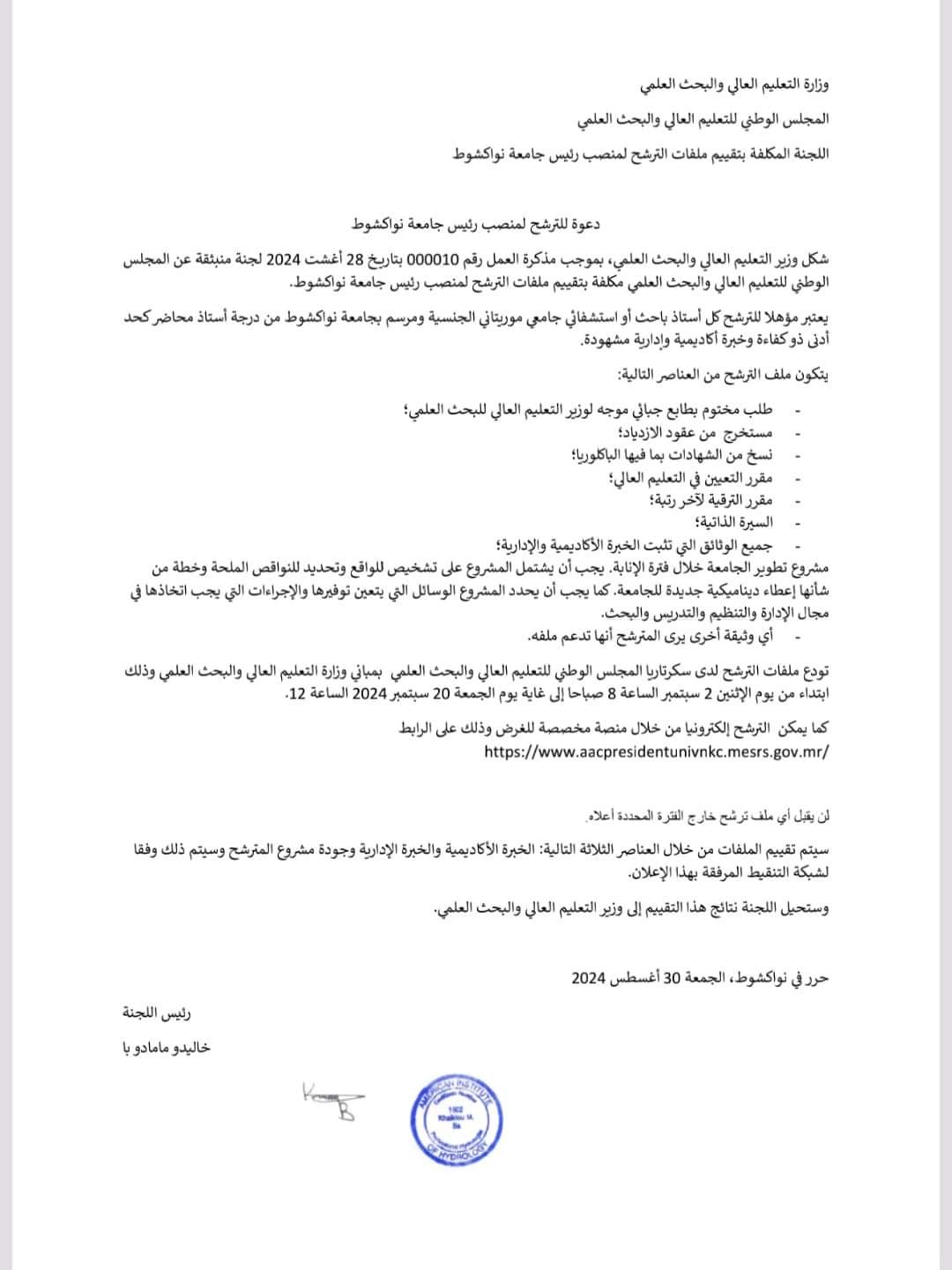 فتح باب الترشح لرئاسة جامعة نواكشوط