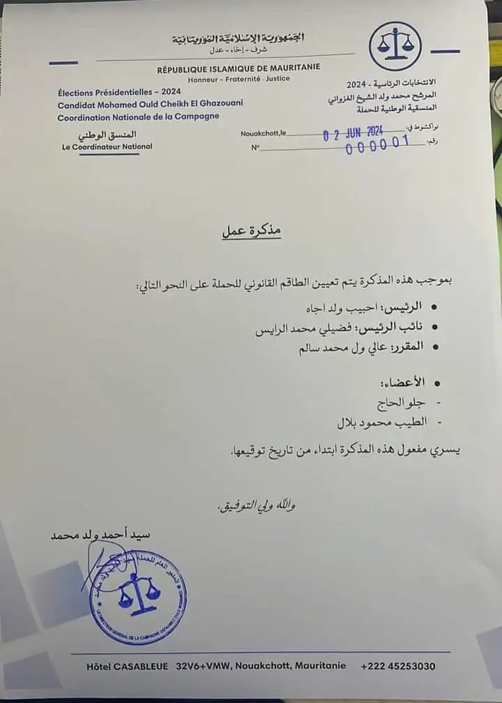 اختيار الفريق القانوني لحملة المرشح ولد الغزواني