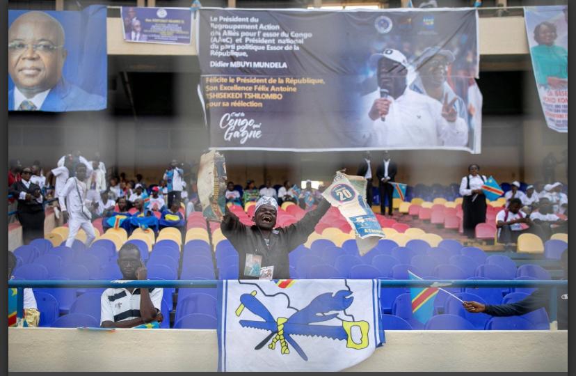 وأدى تشيسيكيدي اليمين الدستورية في استاد بالعاصمة كينشاسا مكتظ بالأنصار الذين يلوحون بالأعلام والمسؤولين الحكوميين ورؤساء الدول الأفريقية والمبعوثين الأجانب بما في ذلك الولايات المتحدة والصين وفرنسا.