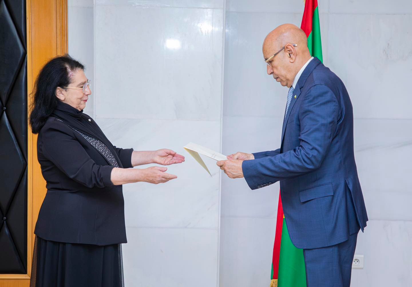 تسلم محمد ولد الشيخ الغزواني، اليوم الثلاثاء بالقصر الرئاسي في نواكشوط، أوراق اعتماد لورا بوتا، بوصفها سفيرة فوق العادة وكاملة السلطة لجمهورية إيطاليا لدى الجمهورية الإسلامية الموريتانية.