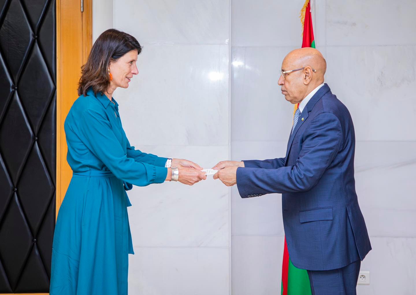 وتسلم ايضا رئيس الجمهورية أوراق اعتماد سعادة السيدة كارمن بريجتا هاجنرس، بوصفها سفيرة فوق العادة وكاملة السلطة لمملكة هولندا لدى الجمهورية الإسلامية الموريتانية، وأوراق اعتماد سعادة السيدة آنا جانغوفيك، بوصفها سفيرة فوق العادة وكاملة السلطة لجمهورية النمسا لدى الجمهورية الإسلامية الموريتانية.