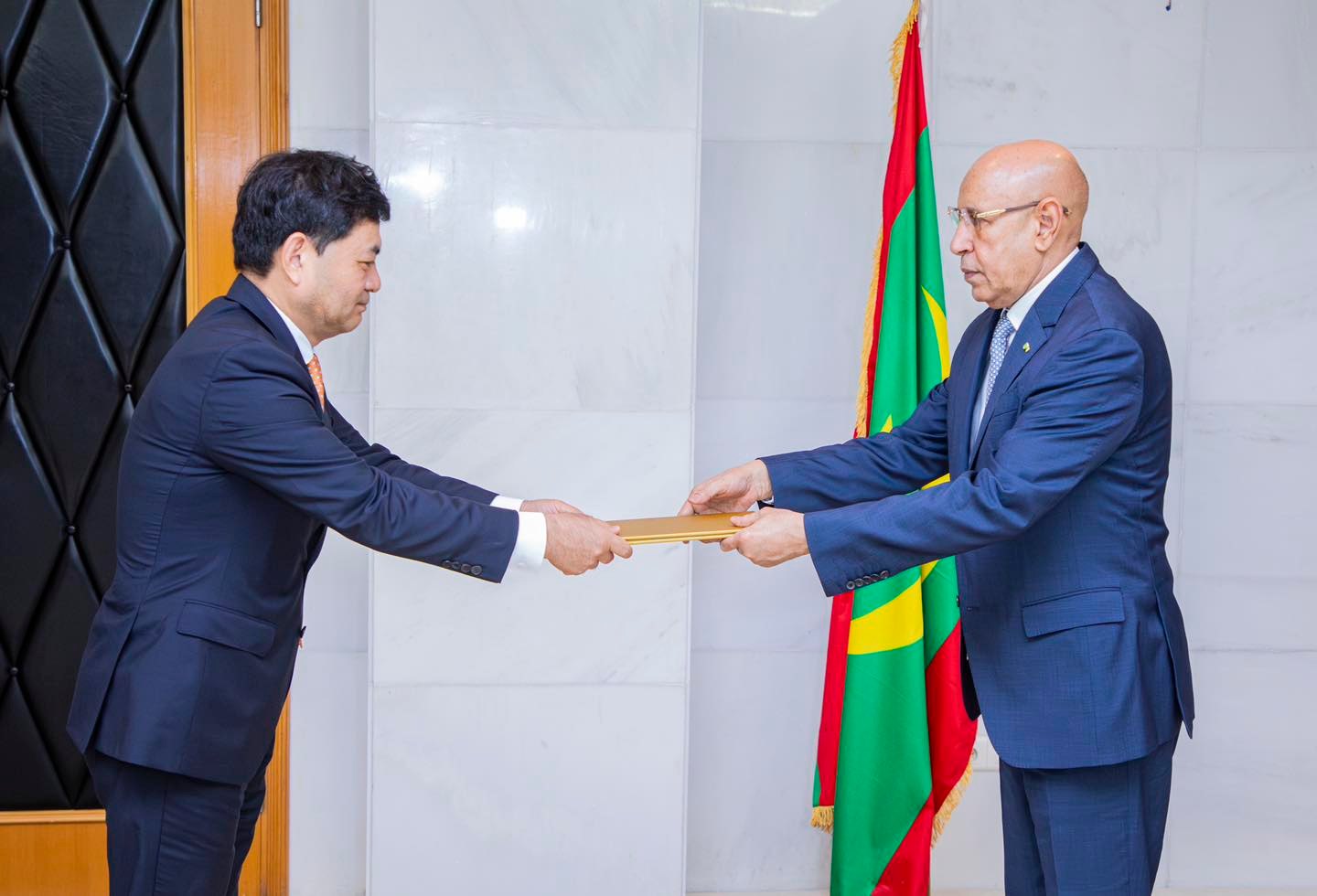 وقد خص رئيس الجمهورية الدبلوماسيين بعد تسليم أوراق الاعتماد، بمقابلة حضرها معالي الوزير المكلف بالديوان السيد المختار ولد أجاي ، والسيد محمد سالم ولد مرزوك، معالي وزير الشؤون الخارجية والتعاون والموريتانيين في الخارج، والسيد هارونا تراوري، مكلف بمهمة برئاسة الجمهورية والسيد محمد الحنشي الكتّاب، السفير المدير العام للتعاون الثنائي بوزارة الشؤون الخارجية والتعاون والموريتانيين في الخارج.