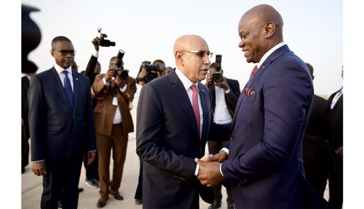 واستقبل الرئيس الغابوني عند وصوله مطار أم التونسي الدولي من طرف نظيره الموريتاني الرئيس محمد ولد الشيخ الغزواني محاطا بوزيره الأول وبعض أركان نظامه.