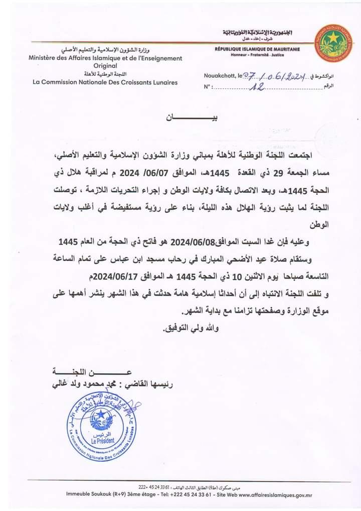 وعقدت اللجنة اجتماعها الليلة بمباني وزارة الشؤون الإسلامية والتعليم الأصلي في نواكشوط، وذلك بالتزامن مع اجتماع لجانها الفرعية في عواصم الولايات.