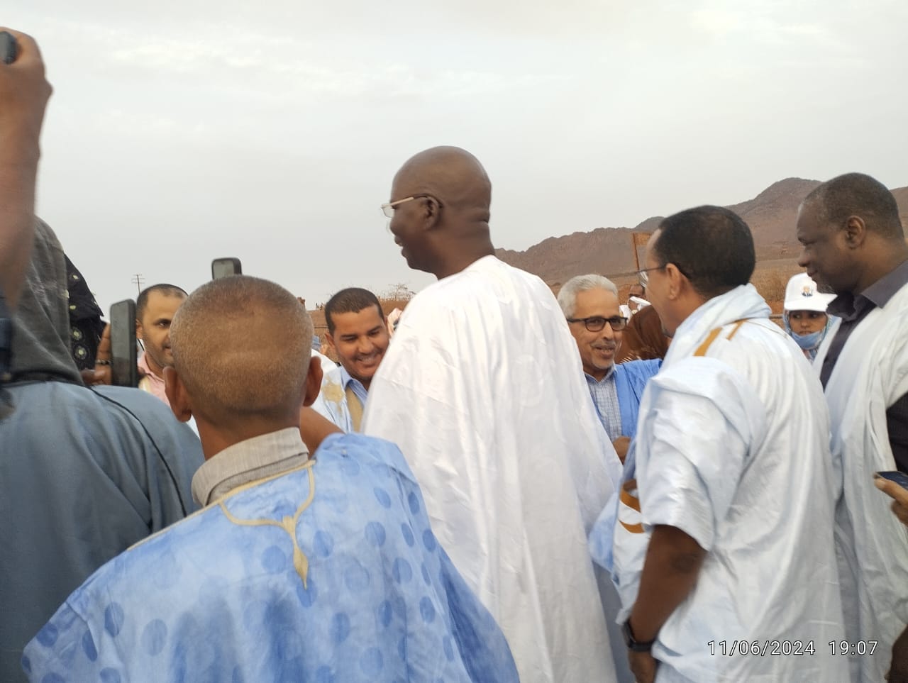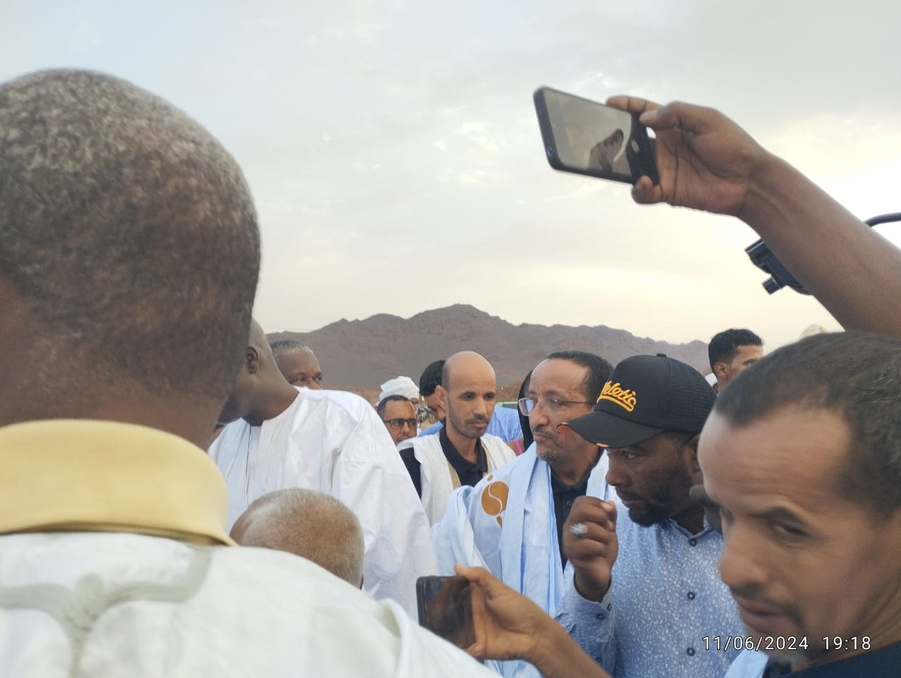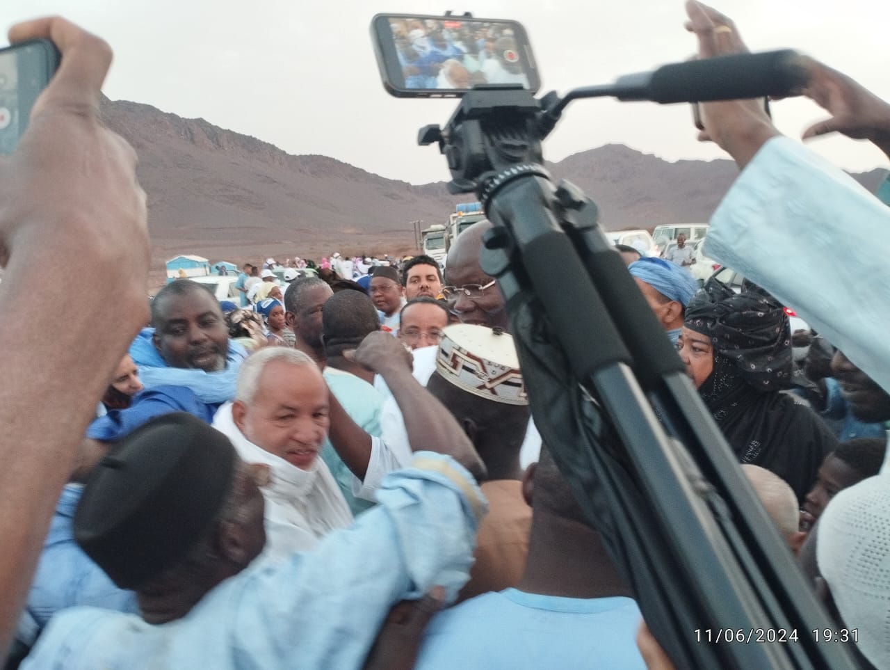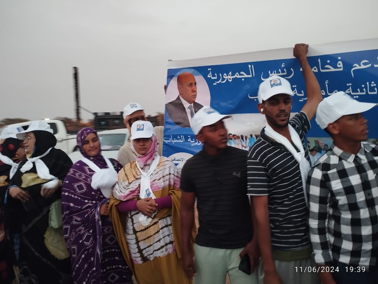 اصطفت جماهير عريضة على جانب الطريق عند مدخل المدينة معبرة عن دعمها للمرشح محمد ولد الغزواني معربة عن استعدادها تلبية مهمية المنسقين والعمل على انجاح مهمتهم والتصويت بكثرة يوم 29 يونيو لولد الغزواني .