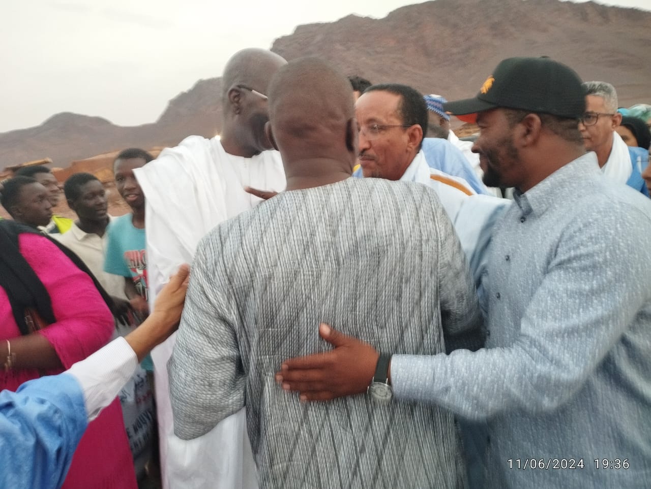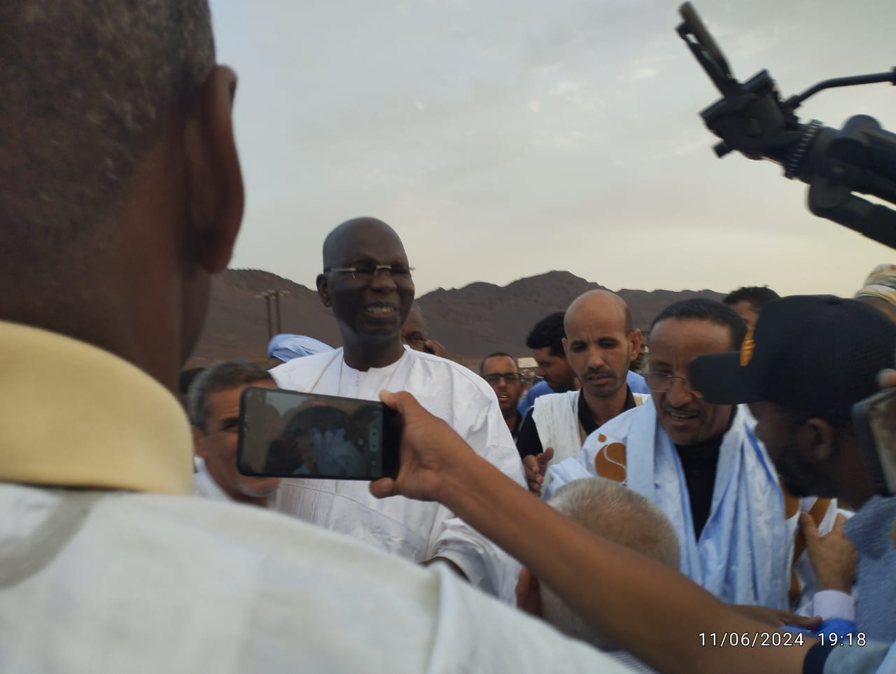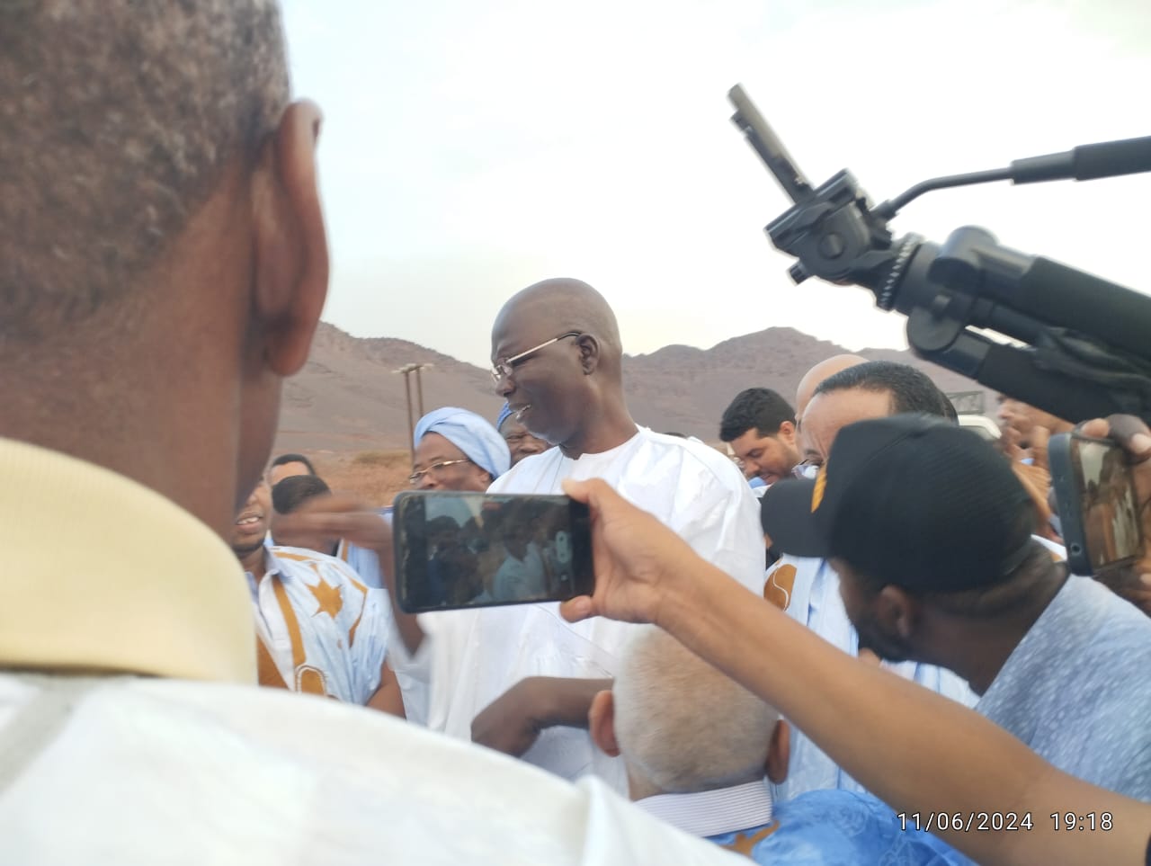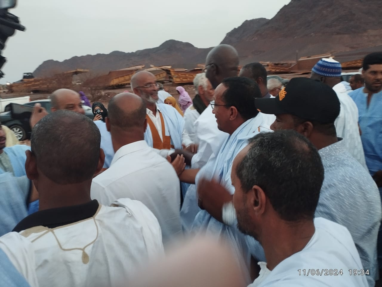 اصطفت جماهير عريضة على جانب الطريق عند مدخل المدينة معبرة عن دعمها للمرشح محمد ولد الغزواني معربة عن استعدادها تلبية مهمية المنسقين والعمل على انجاح مهمتهم والتصويت بكثرة يوم 29 يونيو لولد الغزواني .