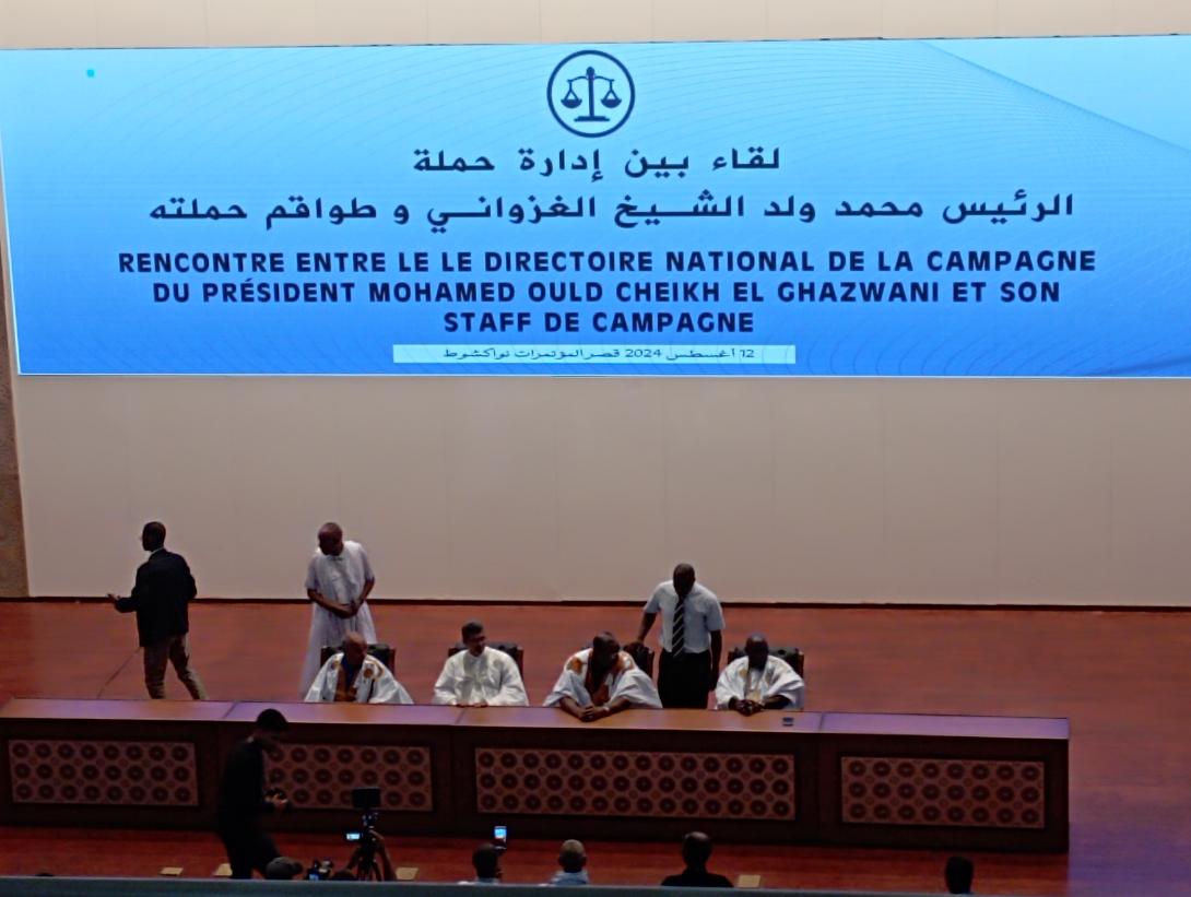 عقدت إدارة حملة المرشح الفائز بالرئاسة السيد محمد ولد الشيخ الغزواني مساء اليوم لقاء هام بقصر المؤتمرات القديم جمع إدارة حملة الرئيس محمد ولد الشيخ الغزواني بطواقم حملته الانتخابية.