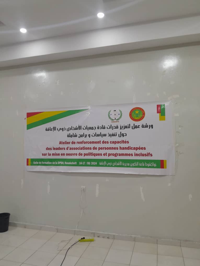 و أكد رئيس الإتحادية الموريتانية للجمعيات الوطنية للأشخاص ذوي الإعاقة أنه على القادة الجمعويين العاملين في مجال الإعاقة الإهتمام بمثل هذه الورشات لي ما توفر لهم من معلومات .