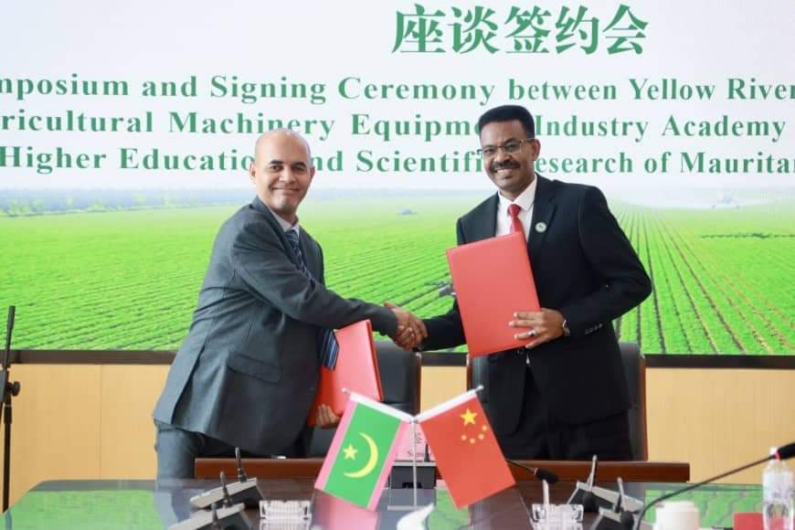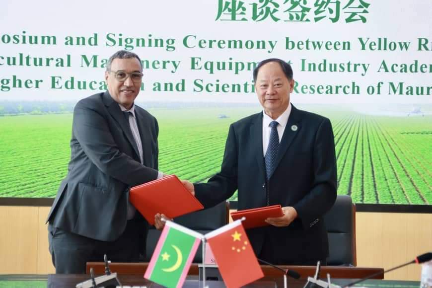 أشرف وزير التعليم العالي والبحث العلمي، يعقوب ولد أمين، اليوم في بيجينغ، على توقيع اتفاقية تعاون بين الوزارة وأكاديمية دلتا النهر الأصفر لبحوث وصناعة آلات ومعدات الزراعة الذكية في جمهورية الصين الشعبية.