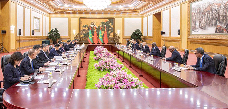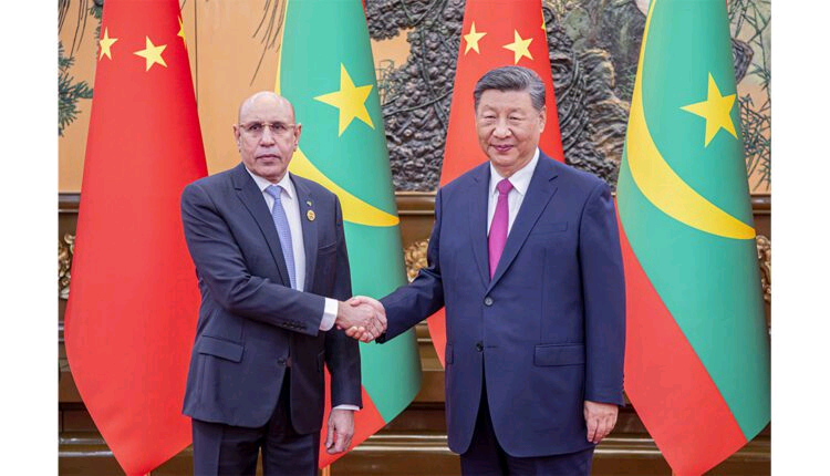 التقى رئيس الجمهورية، رئيس الاتحاد الإفريقي، محمد ولد الشيخ الغزواني، اليوم الثلاثاء في العاصمة الصينية بيجين، بالرئيس الصيني شي جين بينغ.