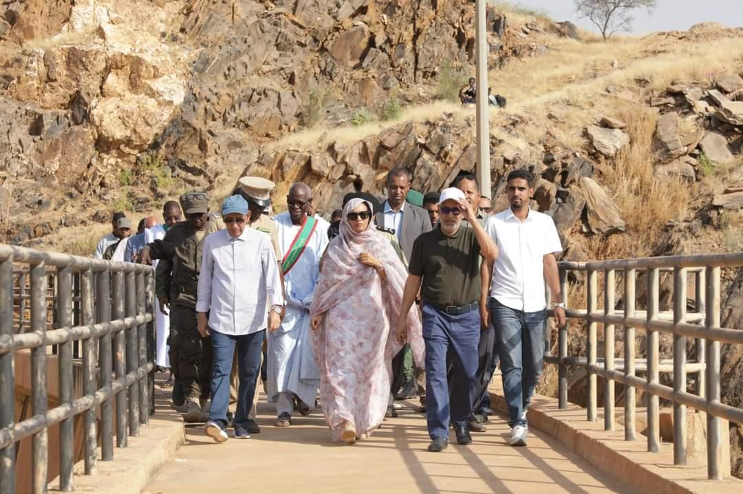 واطلعت بنت مولود خلال الزيارة على مستوى الأشغال في محطة معالجة المياه الخام بسعة 10,000 متر مكعب يوميا، والمباني الملحقة إلى جانب خط نقل المياه بين محطة الضخ والخزان.