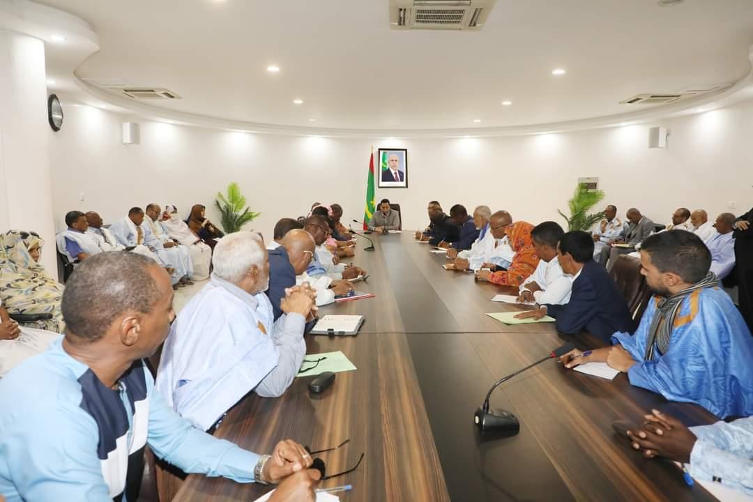 التقى الوزير الأول، السيد المختار ولد اجاي، أمس الاثنين بمباني الوزارة الأولى، ممثلي نقابات التعليم الأساسي والثانوي، تنفيذًا لتوجيهات رئيس الجمهورية، السيد محمد ولد الشيخ الغزواني، الهادفة إلى إشراك الفاعلين في قطاع التعليم في التصورات العملية لتحقيق الاستفادة القصوى من المبادرات المعلنة لصالح القطاع بمناسبة الذكرى الرابعة والستين لعيد الاستقلال.