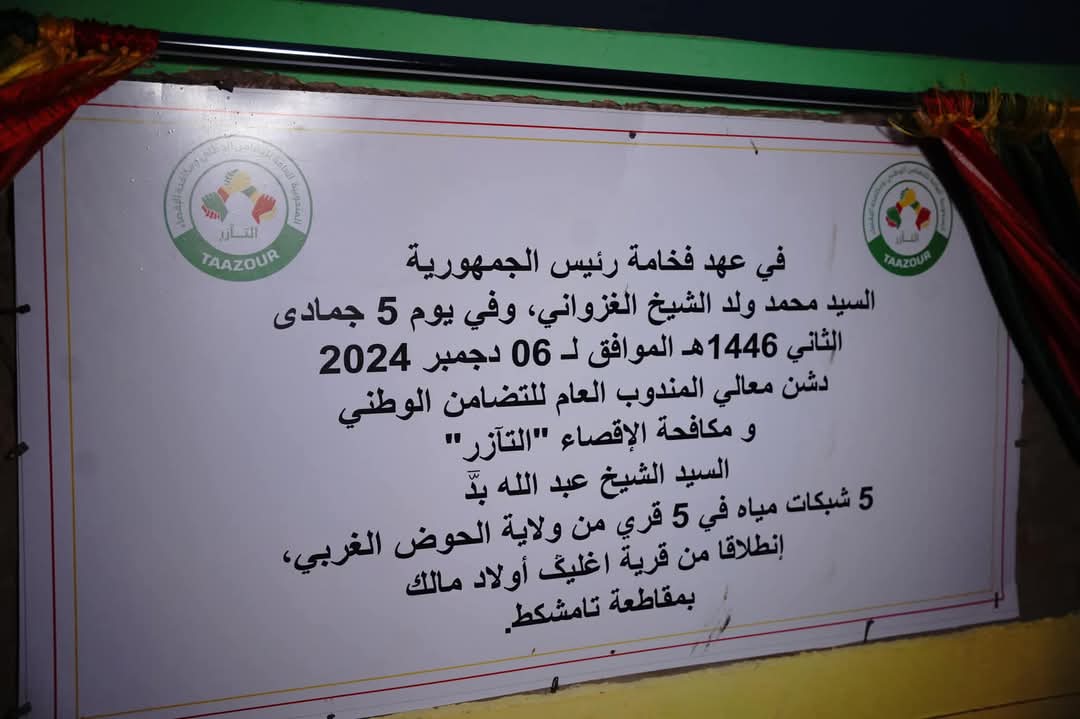 وأكد المندوب العام، في كلمته بالمناسبة، أن هذه المشاريع تأتي ضمن رؤية رئيس الجمهورية السيد محمد ولد الشيخ الغزواني لتعزيز التنمية الشاملة وتقريب الخدمات الأساسية من المواطنين، مشيراً إلى أن تكلفتها تجاوزت 44 مليون أوقية جديدة.