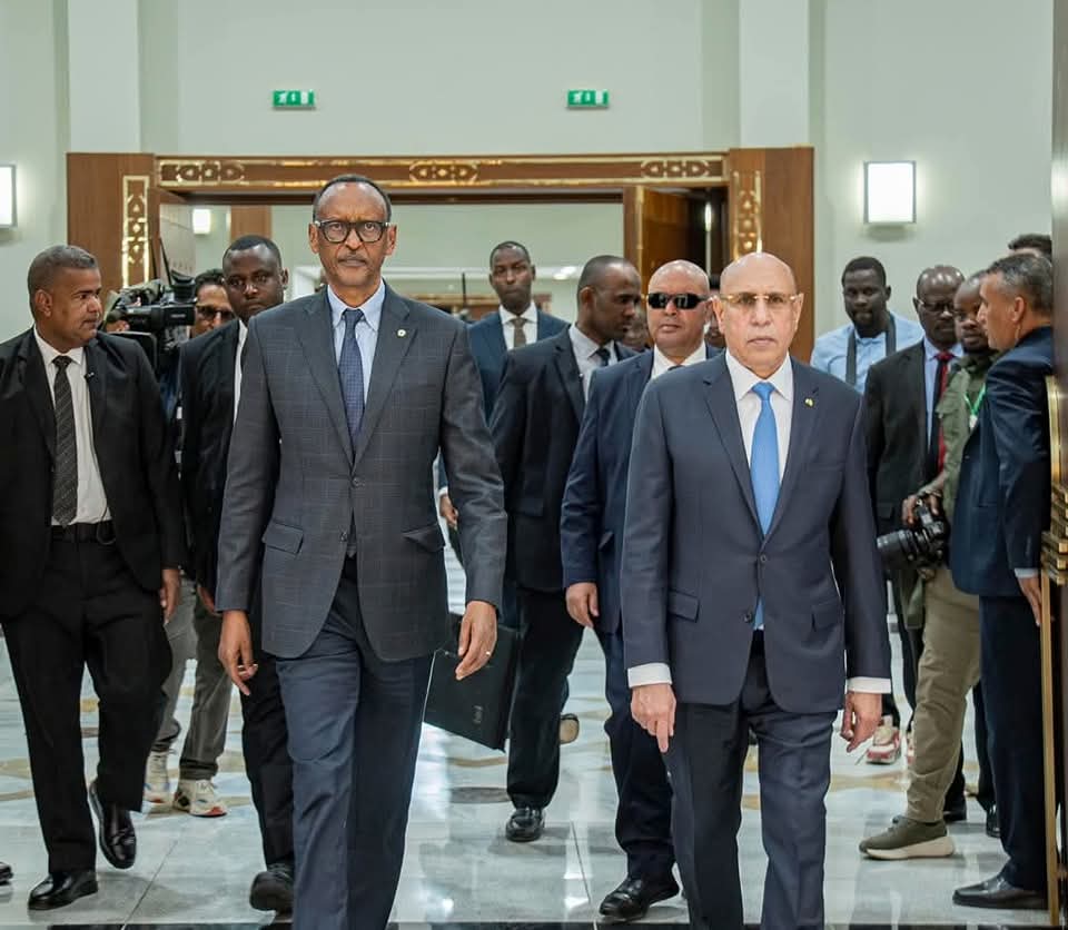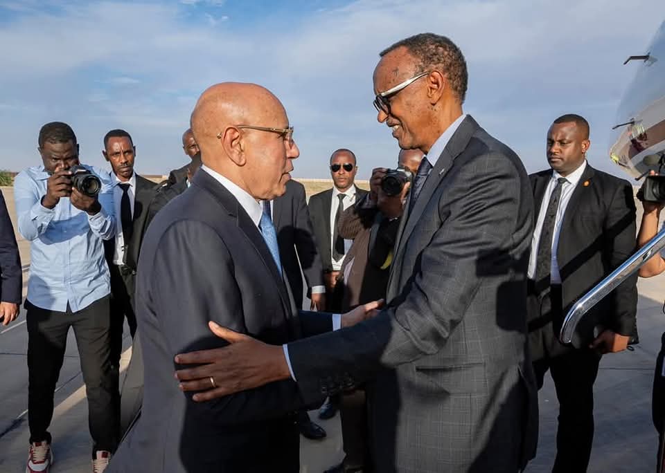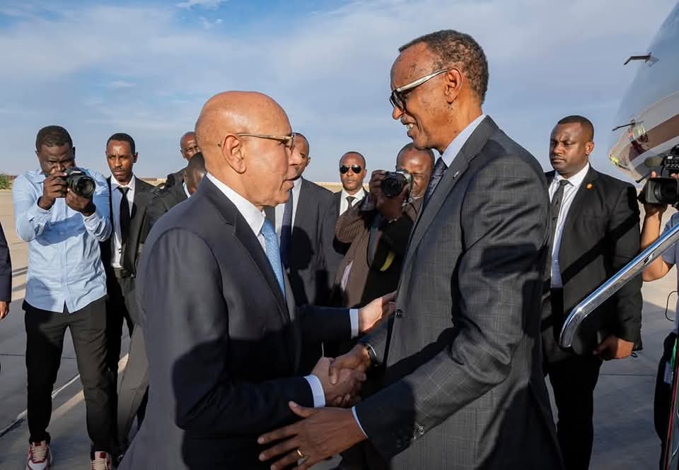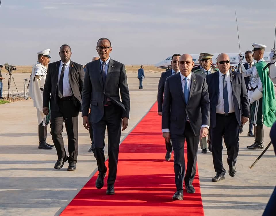 وكان في استقبال الرئيس كاغامي بمطار نواكشوط الدولي "أم التونسي" الرئيس الموريتاني محمد ولد الشيخ الغزواني.