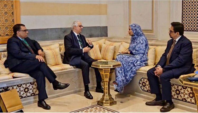 عقدت معالي وزيرة المياه والصرف الصحي، السيدة آمال بنت مولود، لقاءً مع معالي وزير التجهيز والماء في المملكة المغربية، السيد نزار بركة، على هامش منتدى تمويل تنمية المياه في منطقة الشرق الأوسط وشمال إفريقيا.