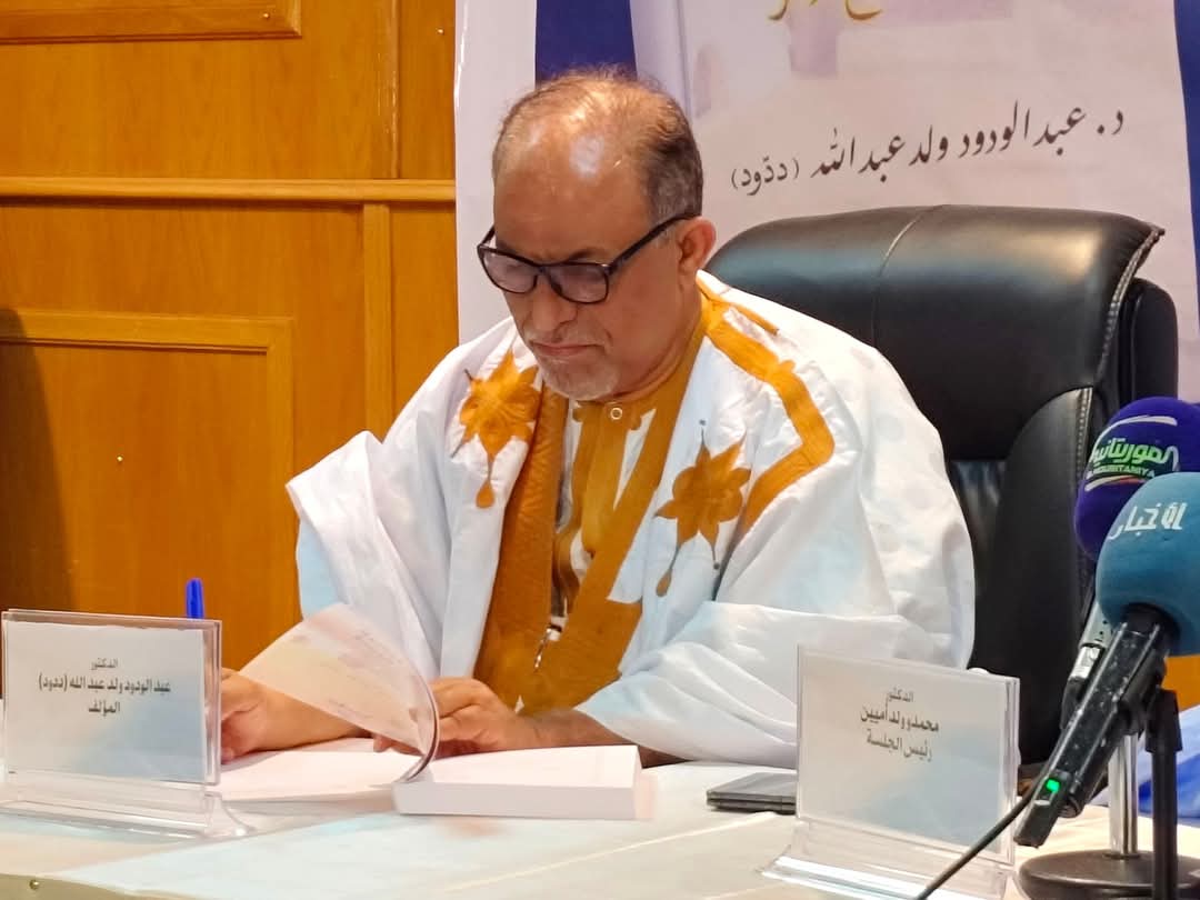 من جانبه، قدم مؤلف الكتاب، السيد عبد الودود ولد عبد الله “ددود”، خلال كلمته التقديمية، شرحًا للسياق المعرفي والمنهجية التي اتبعها في تأليف الكتاب، موضحًا الحقل العلمي الذي ينتمي إليه. كما استعرض المحاور الأساسية التي تشكل مضمون هذا العمل، مشيرًا إلى أهدافه ودلالاته العلمية.