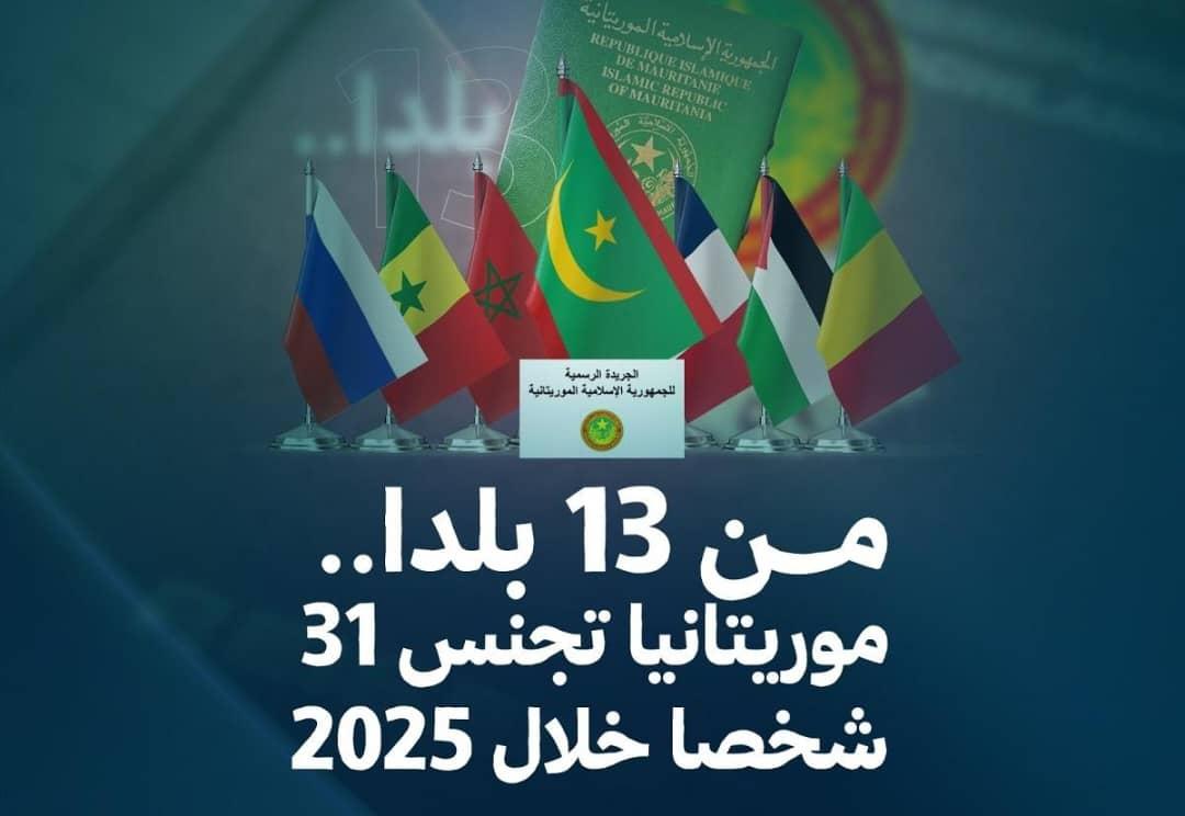 منحت موريتانيا  جنسيتها لـ31 شخصا خلال 2025، في رقم قياسي مقارنة مع الأعوام السابقة .