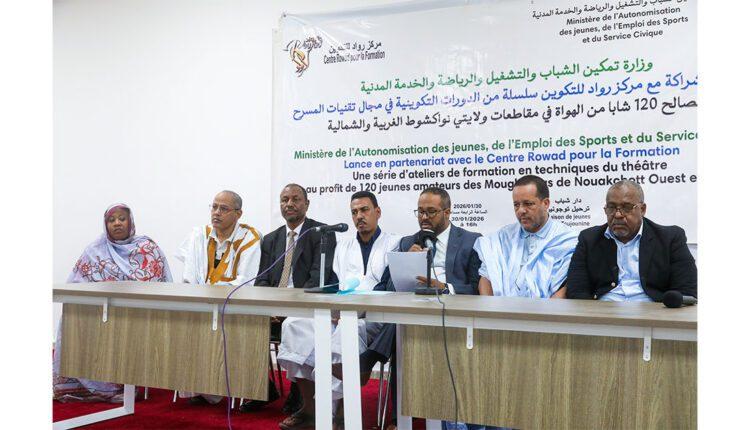 أطلقت إدارة الشباب التابعة لوزارة تمكين الشباب والتشغيل والرياضة والخدمة المدنية، بالتعاون مع “مركز رواد للتكوين”، مساء الجمعة بمقاطعة توجنين، سلسلة من الدورات التكوينية في مجال تقنيات المسرح وكتابة السيناريو والعروض المسرحية، لفائدة 120 شابًا من ولايتي نواكشوط الغربية والشمالية.