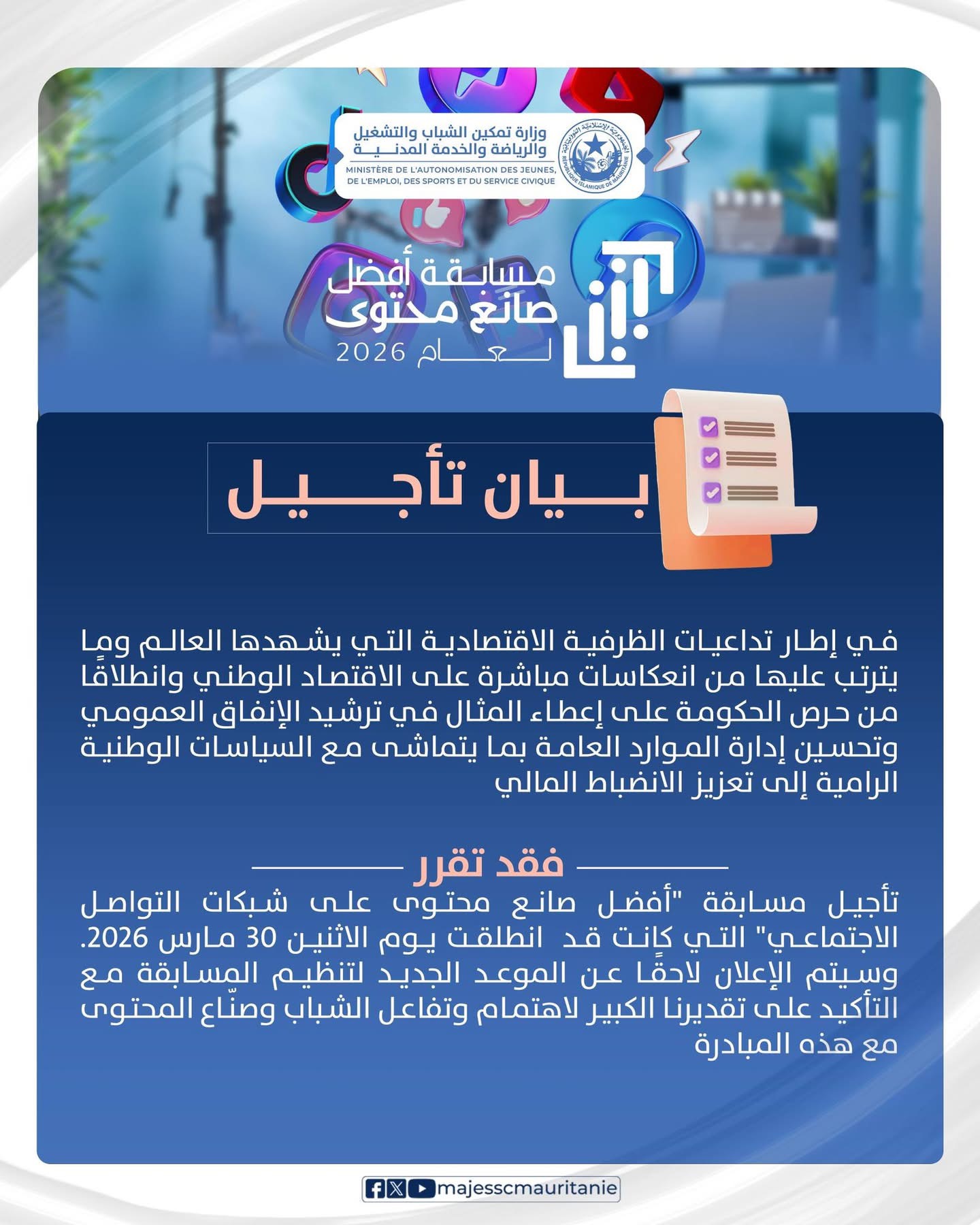 تأجيل مسابقة “أفضل صانع محتوى 2026” في سياق ضغوط اقتصادية